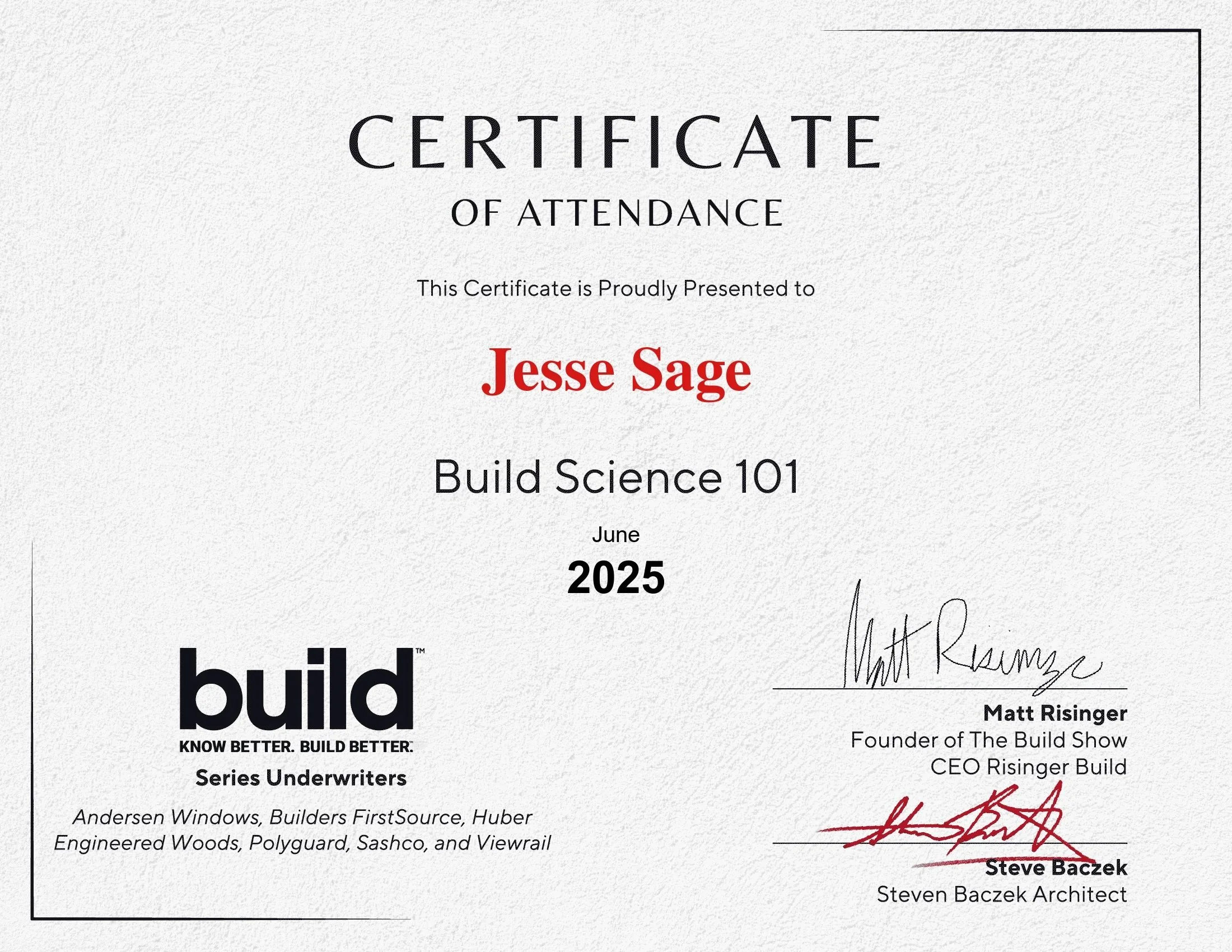Certified Build homes are grounded in the science-based approach of BSI-145: Zero Energy Ready Homes by Dr. Joseph Lstiburek, Building Science Corporation and Building Science 101 & 201 Build Show Network: Matt Reisinger, Steve Baczek, Brent Hull. This research guides all building assemblies and control strategies for Water, Air, Thermal, and Vapor management in Climate Zone 5, using the 5-10-20-40-60 rule: